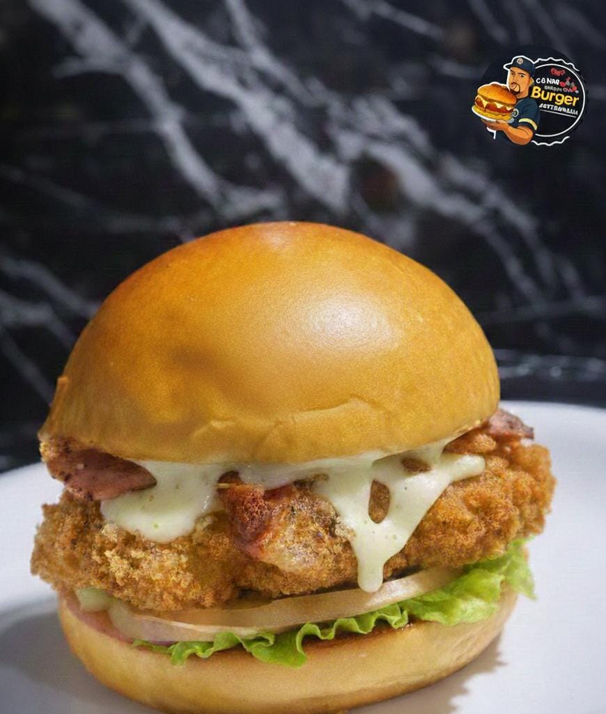 | Frango empanado crocante, alface ,tomate ,cebola ,molho rose, queijo, presunto e bacon |
